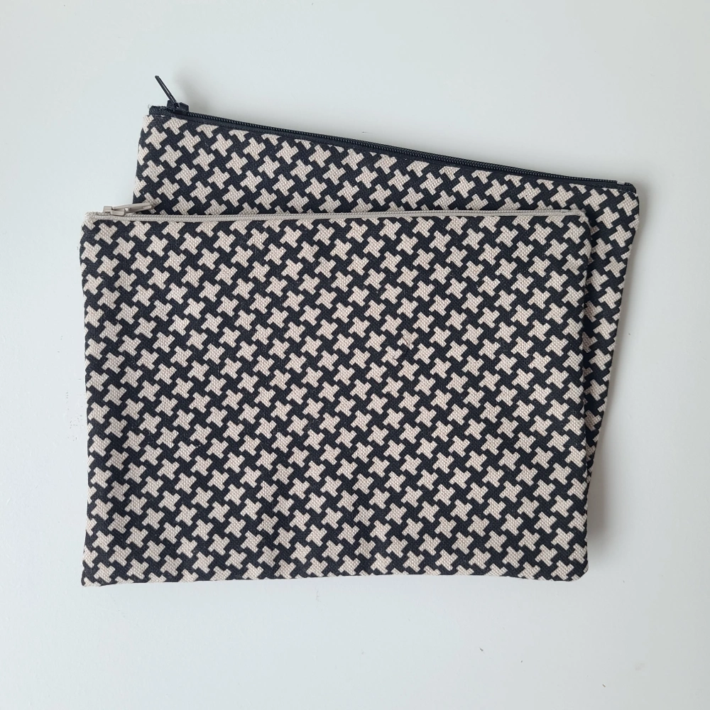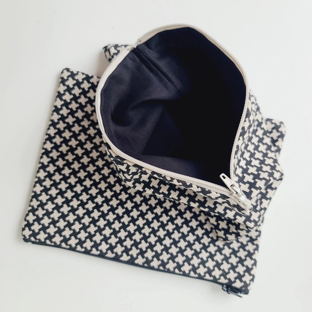 Pochette zippée en tissu pied-de-poule noir et blanc : symbole d’élégance intemporelle, ce motif iconique a traversé les décennies avec style.